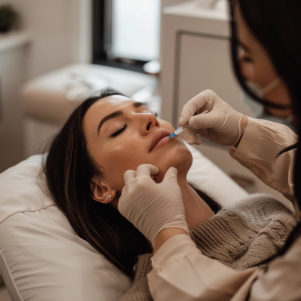 The procedure involves injecting dermal fillers or anti-wrinkle injections into specific areas of the lips. A numbing cream is applied to minimise discomfort, and the treatment typically takes about 15-30 minutes.